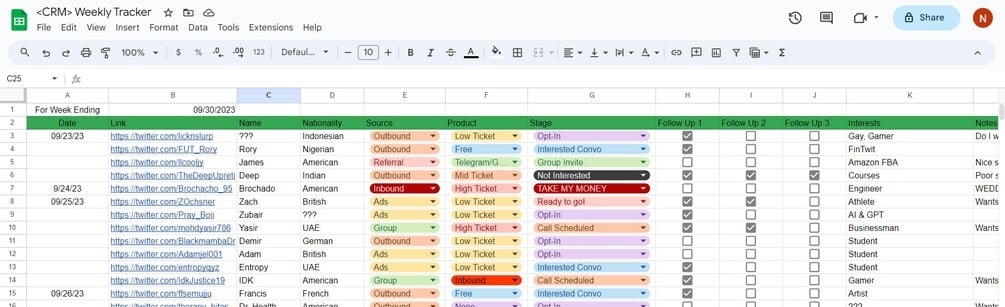 That's why you need to be tracking every single positive response that you receive. Write down their link, name, source, interests, and keep track of where they are at in the sales process so that you always have your finger on the pulse of the market.